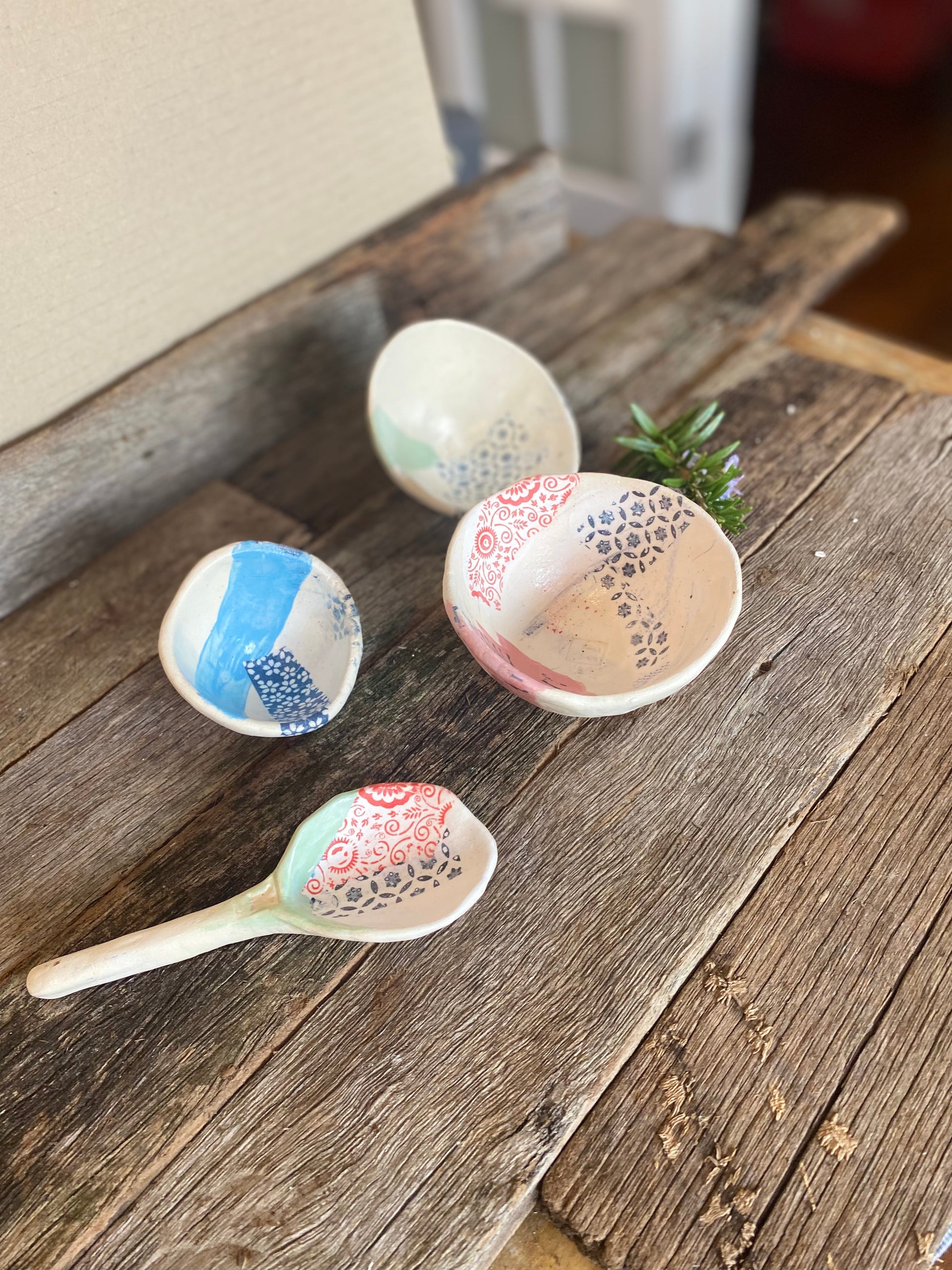 Apply patterned glaze decal to any ceramic surface to create artworks in collage style. Add stripes and shapes with pattern to create your own style. Functional or decorative, these creative pieces will find a place in your nibbles afternoons with friends. This kit contains all the materials required to create your clay pieces and then add the decal patterns.