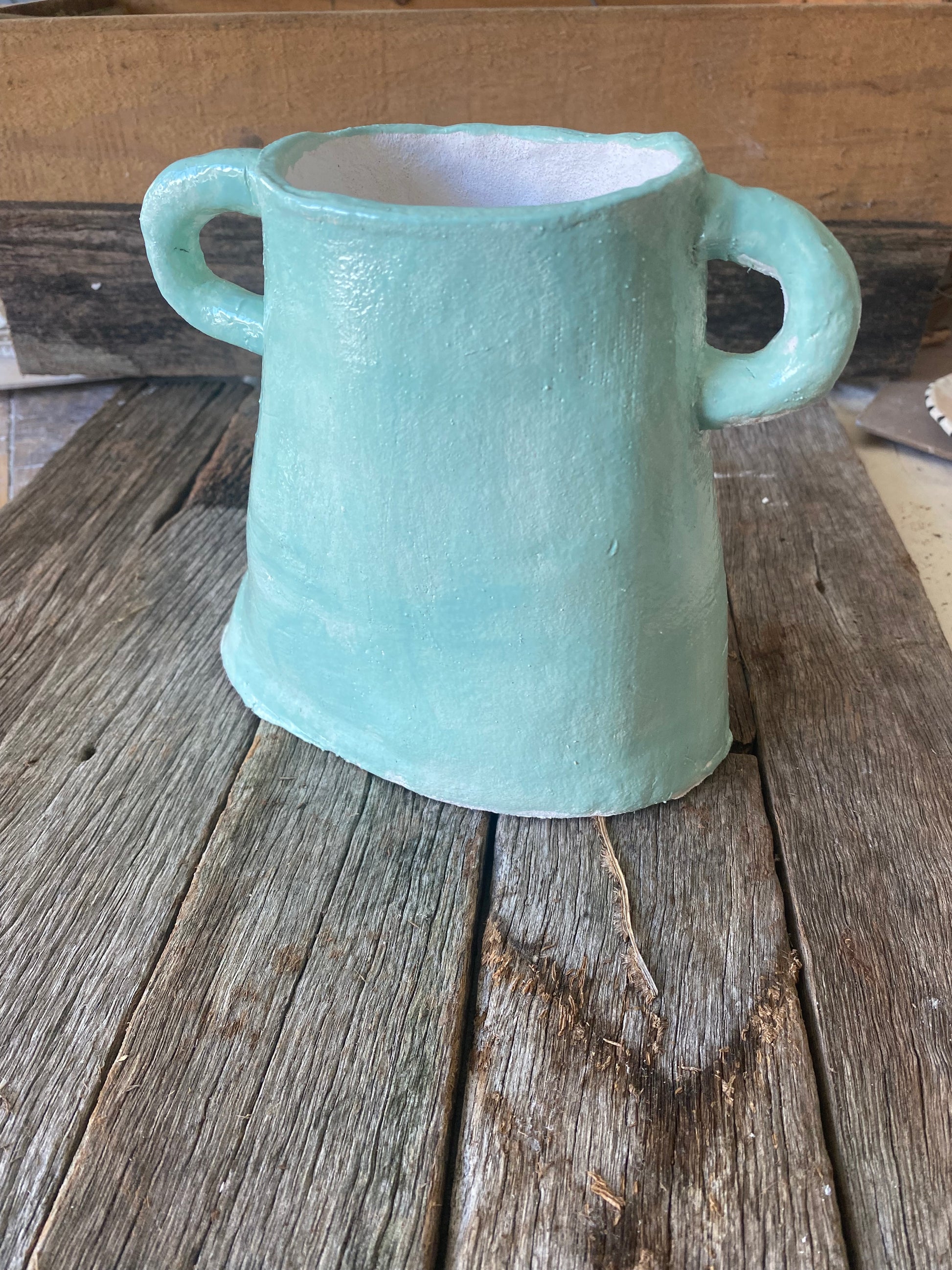 Create a vase or vessel for decorative or functional use. This box contains clay and glaze to decorate and a fire me up card to get it dipped in clear glaze to make it water proof.